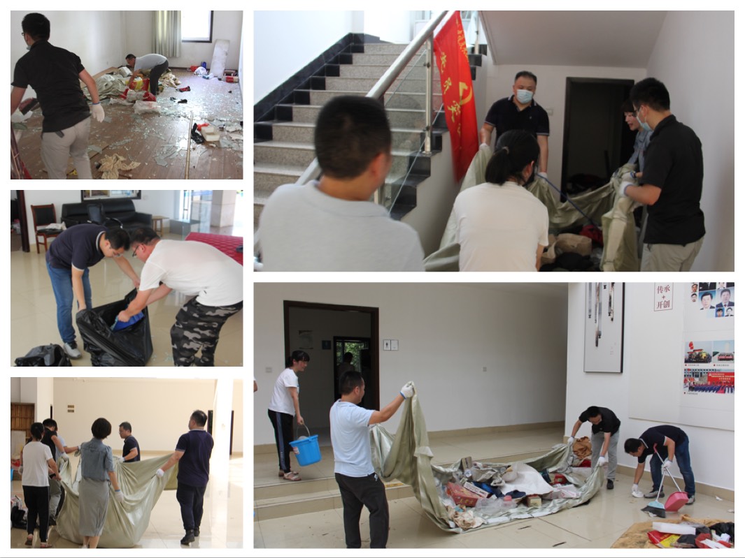 此次“黨員活動日”黨員們組織開展酒店附屬設(shè)施的集中清理整頓,對有關(guān)單位移交的辦公樓進(jìn)行全面清理,為酒店建設(shè)人員現(xiàn)場辦公提供條件。經(jīng)過簡單籌劃安排,各黨支部黨員、預(yù)備黨員、發(fā)展對象和入黨積極分子們結(jié)成臨時工作小組,實行任務(wù)包干,對辦公房、樓梯間、食堂及大廳區(qū)域進(jìn)行全面整理,在面對體量大、難度高的“硬骨頭”時,黨員們更是大力發(fā)揮出了突擊隊的沖鋒精神,搶在前干在前,揮汗如雨、不怕臟累,經(jīng)過近一個上午的集中攻堅,累計整理出20余間工作間,清理的垃圾雜物堆如小山。