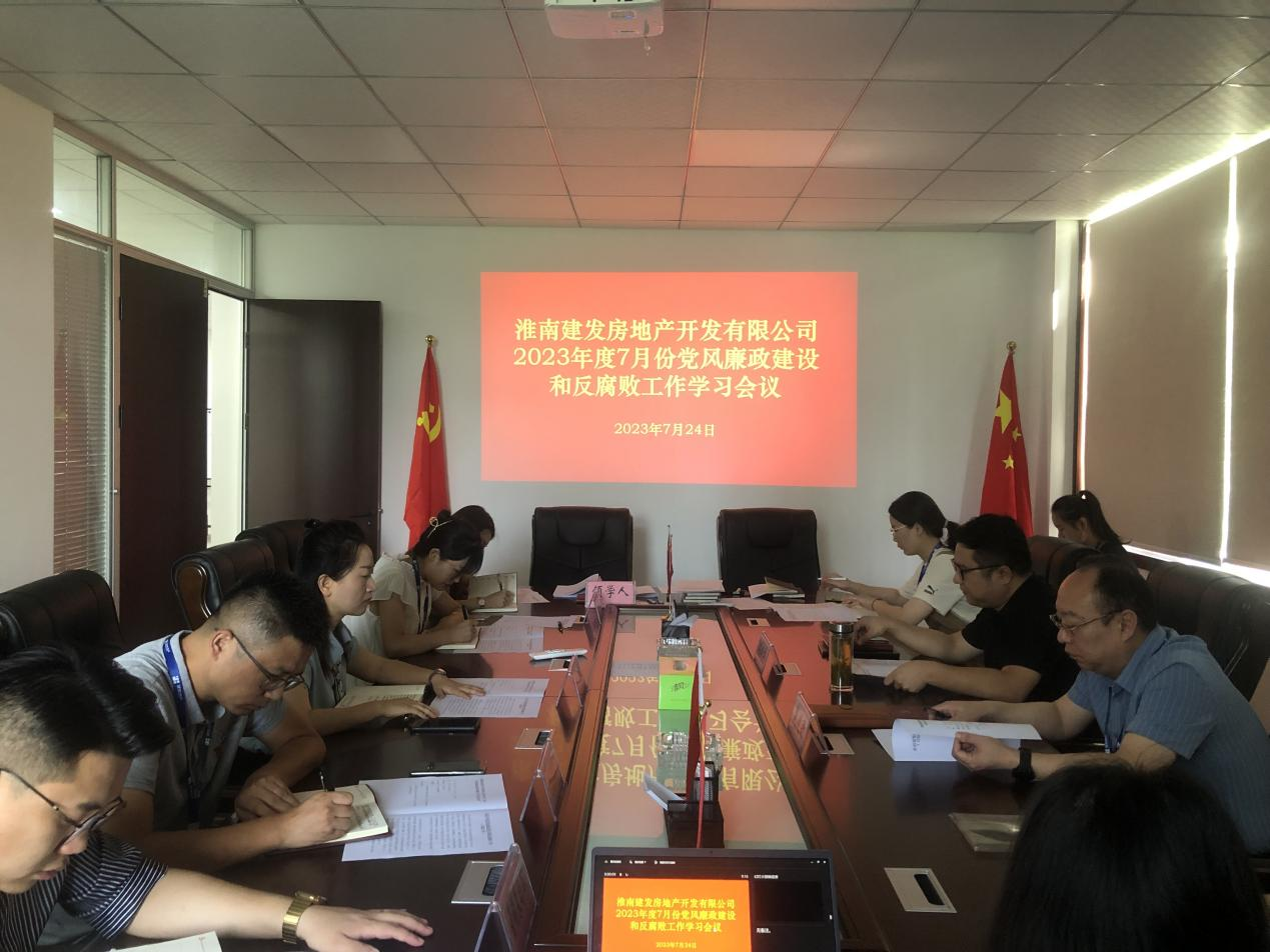 為增強廉潔自律意識,持之以恒正風肅紀,促進公司黨風廉政建設和反腐敗工作進一步壓緊壓實,助推公司高質(zhì)量發(fā)展。7月24日上午,淮南建發(fā)房地產(chǎn)開發(fā)有限公司在公司2樓會議室召開2023年度7月份黨風廉政建設和反腐敗工作會議,公司全體員工參加。